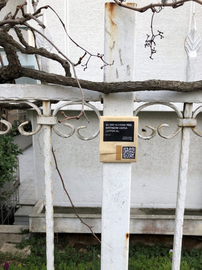 BEIJE, menstrüel ürünlere erişimde maddi zorluk yaşayanların ihtiyaç halinde kullanabilmeleri için bir farkındalık kampanyası hayata geçirdi. Kampanya kapsamında, “Bu bir hijyenik ped. İhtiyacın varsa lütfen al.” mesajı taşıyan pedler trafik ışıkları, sokak lambaları, duvarlara yapıştırılarak bırakıldı. Başlatılan bu farkındalık kampanyası aynı zamanda regl tabusunun aşılmasına katkıda bulunmayı da amaçlıyor. Özellikle sosyal medya paylaşımıyla büyüyen kampanya, sokaklardan üniversite kampüslerine de taşındı. BEIJE, öğrencilerin desteğiyle 11 üniversitenin tuvaletine de ihtiyaç duyan öğrenciler için ped bıraktı.